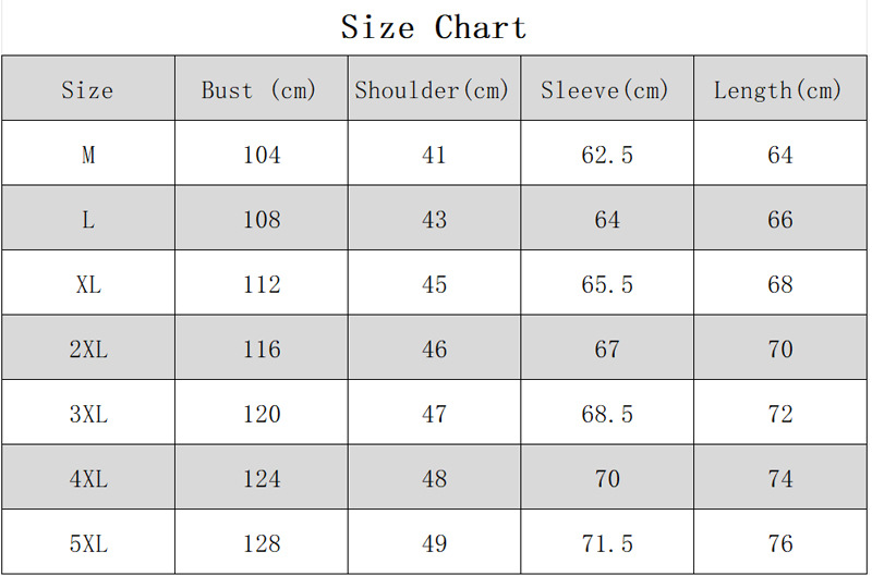 Size Information: M, L, XL, XXL, 3XL, 4XL, 5XL