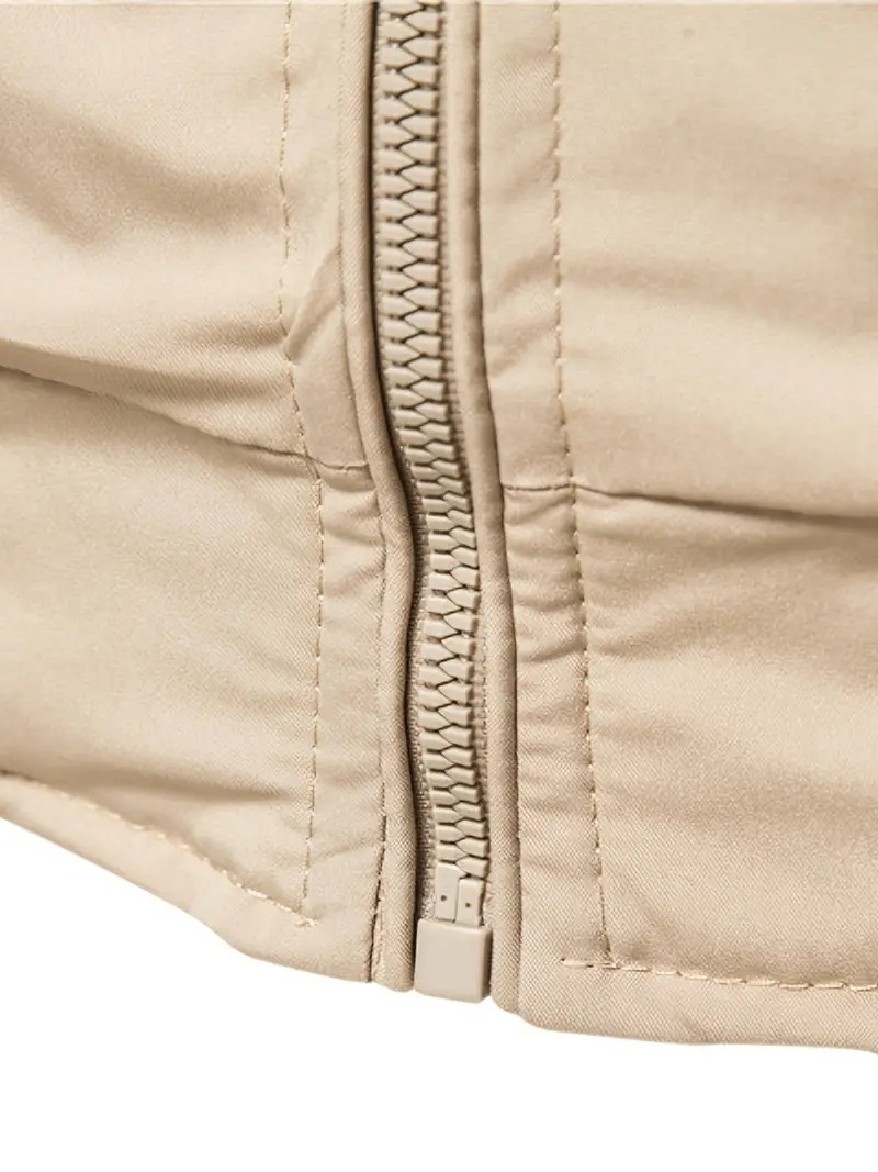 Features: Slim fit, curved hem, zippered patch pockets, lightweight design, ideal for casual spring and autumn wear